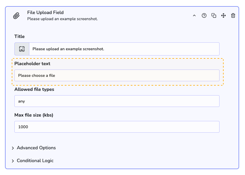 With the upload field, your customers will be able to communicate more efficiently, as they will be able to include all kinds of files complementing their submit